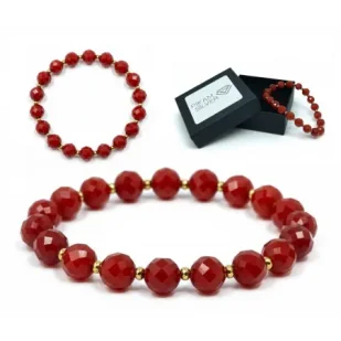 Bransoletka z naturalnego CZERWONEGO AGATU z fasetowanym HEMATYTEMStylowa i ponadczasowa bransoletka wykonana z naturalnych kamieninbsp;CZERWONEGO AGATUnbsp;zachwyca swoją estetyką oraz starannym wykonaniem. Każdy koralik posiada unikalną strukturę i odcień, dzięki czemu każda bransoletka jest niepowtarzalna. Kompozycję dopełniają drobne, fasetowane elementy z HEMATYTU, które subtelnie odbijają światło i nadają całości eleganckiego, nowoczesnego charakteru.Bransoletka została wykonana na elastycznej, wytrzymałej gumce, co zapewnia wygodę noszenia oraz idealne dopasowanie do nadgarstka. To uniwersalny dodatek, który doskonale sprawdzi się zarówno na co dzień, jak i jako delikatny akcent uzupełniający bardziej eleganckie stylizacje.Dlaczego warto wybrać tę bransoletkę?Wykonana z naturalnych kamieni czerwonego agatuEleganckie, fasetowane elementy z hematytuElastyczna forma - komfort i łatwe zakładanieKażda bransoletka jest unikatowaIdealna na prezent lub jako stylowy dodatek na co dzieńParametry:
