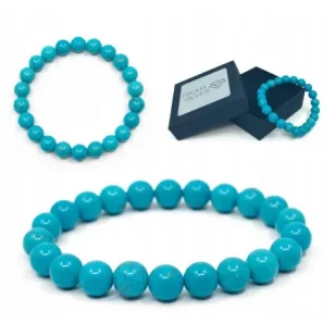 Bransoletka z naturalnych kamieni TURKUSStylowa i ponadczasowa bransoletka wykonana z naturalnych kamieni TURKUSU zachwyca swoją estetyką oraz starannym wykonaniem. Każdy koralik posiada unikalną strukturę i odcień, dzięki czemu każda bransoletka jest niepowtarzalna.Bransoletka została wykonana na elastycznej, wytrzymałej gumce, co zapewnia wygodę noszenia oraz idealne dopasowanie do nadgarstka. To uniwersalny dodatek, który doskonale sprawdzi się zarówno na co dzień, jak i jako delikatny akcent uzupełniający bardziej eleganckie stylizacje.Dlaczego warto wybrać tę bransoletkę?Wykonana z naturalnych kamieni turkusuElastyczna forma - komfort i łatwe zakładanieKażda bransoletka jest unikatowaIdealna na prezent lub jako stylowy dodatek na co dzieńParametry:
