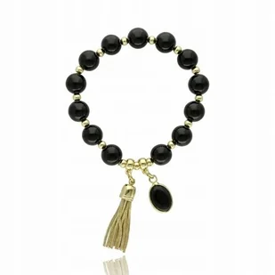 mosiądz, czarny agat kolor: złoty, czarny długość: 16- 17 cm symbol producenta: B97907 opakowanie: metka, kartonik z uszkami z logo wielkość korali: