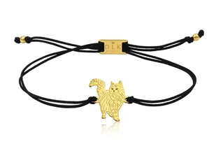 Bransoletka z kotem norweskim na sznurku to propozycja pięknej, wyjątkowej i symbolicznej biżuterii dla wszystkich wielbicieli kotów. W skład bransoletki wchodzi łącznik przedstawiający kota w charakterystycznej kociej pozycji, zamknięcie regulujące rozmiar bransoletki oraz ozdobne kulki – wszystkie te elementy wykonane są z pozłacanego srebra próby 925 i osadzone na bardzo trwałym i wytrzymałym sznurku. Rozmiar kota: 13 x 16 mm Surowiec: Srebro próby 925 Materiał: