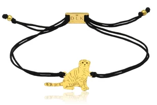 Bransoletka z kotem szkockim na sznurku to propozycja pięknej, wyjątkowej i symbolicznej biżuterii dla wszystkich wielbicieli kotów. W skład bransoletki wchodzi łącznik przedstawiający kota w charakterystycznej kociej pozycji, zamknięcie regulujące rozmiar bransoletki oraz ozdobne kulki – wszystkie te elementy wykonane są z pozłacanego srebra próby 925 i osadzone na bardzo trwałym i wytrzymałym sznurku. Rozmiar kota: 22 x 15 mm Surowiec: Srebro próby 925 Materiał:
