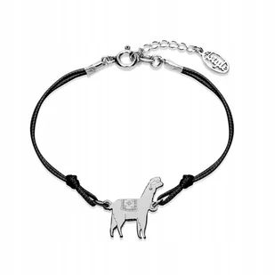 Bransoletka srebrna próby 925 wykonana na sznurku jubilerskim w kolorze czarnym z uroczą zawieszką lamą. Bransoletka zakończona jest przedłużką z metką. Stwórz biżuterię na zamówienie jaką lubisz i wybierz z dostępnych opcji: złocenie, złocenie różowe, rodowanie, rodowanie czarne lub mieszaj kolory w dowolny sposób, np. zapięcie i przedłużka-złocenie, lama-złocenie różowe.
