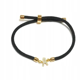 Bransoletka z Literką A Cyrkonie Czarna z Kolorem Złotym Regulowana