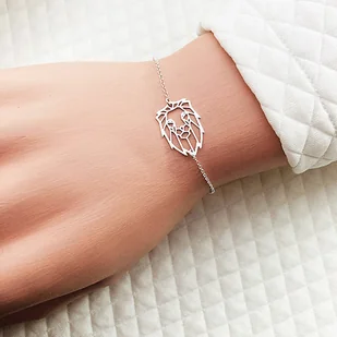 ♡ OPIS Piękna bransoletka z głową lwa. Delikatna i wyjątkowa nawiązująca do sztuki origami.. Unikalny design i wykonanie. Wykonana ze srebra próby 925, może być personalizowana Twoją literką i/lub kamieniem, k ...