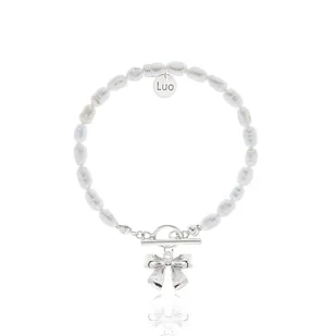 Bransoletka z naturalnych pereł z ozdobnym zapięciem i kokardką. Całość wykonana z naturalnych hodowlanych pereł w kolorze białym. Zawieszka, zapięcie i logo wykonane ze srebra 925. Perły (unikatow ...