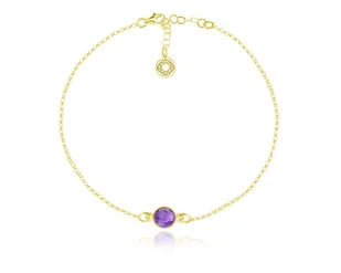 Srebrna bransoletka z naturalnym kamieniem Biżuteria wykonana jest ze srebra pr. 925. Galwanicznie pokryta 24k złotem. Wewnątrz wprawiony naturalny kamień - Ametyst. Ametysty to kamienie idealne dla osób które w jakikolwiek sposób pracują lub chcą pracować nad sobą - swoim charakterem, ale także rozwijać swoje pasje i zainteresowania. Pomaga zachować dyscyplinę i slną wolę.