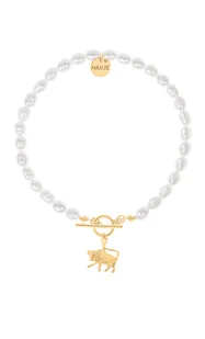 Bransoletka z pereł z pozłacanym znakiem zodiaku Byk