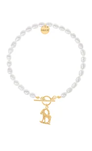 Bransoletka z pereł z pozłacanym znakiem zodiaku Koziorożec 18 cm