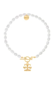 Bransoletka z pereł z pozłacanym znakiem zodiaku Waga 16 cm