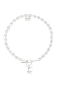 Bransoletka z pereł ze srebrnym grawerowanym reniferkiem 18 cm