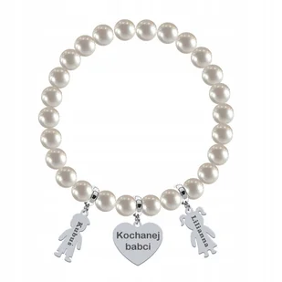 Bransoletka z Perłami Imię Dziecka Serce Srebro Grawer Życzenia Gratis ⭐Perłowa, Uniwersalna Bransoletka na gumce z Sercem i Postaciami Dzieci do wyboru. Bra...