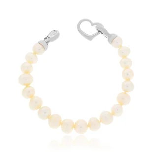 Bransoletka z gładkich kulek masy perłowej ze srebrnym zapięciem dł 19cm, bez marki, AG00000028