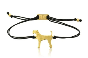 Bransoletka z psem airedale terrierem srebrnym na czarnym sznurku z zapięciem DLK