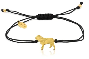 Bransoletka z psem buldogiem angielskim złotym na czarnym sznurku