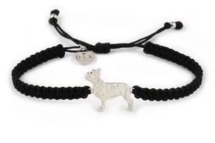 Bransoletka z psem buldogiem francuskim srebrnym na czarnej makramie