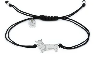 Bransoletka z psem corgi srebrnym to propozycja wyjątkowej biżuterii na rękę z kolekcji “Rasy psów” dla wszystkich miłośników czworonogów. Bransoletka wykonana jest z łącznika w kształcie sylwetki psa ze srebra (próba 925) oraz z czarnego sznurka. Bransoletkę sznurkową dodatkowo ozdabiają srebrne elementy – kulki i zawieszka DLK z czystego srebra (próba 925). Rozmiar psa: 17 x 11 mm Surowiec: