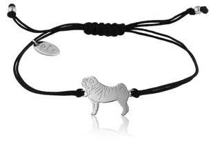 Bransoletka z mopsem to propozycja wyjątkowej biżuterii na rękę z kolekcji “Rasy psów” dla wszystkich miłośników czworonogów. Bransoletka wykonana jest z łącznika w kształcie sylwetki psa, ze srebra (próba 925) oraz z czarnego sznurka. Bransoletkę sznurkową dodatkowo ozdabiają srebrne elementy – kulki i zawieszka DLK ze srebra (próba 925). Rozmiar psa: 16 x 13 mm Surowiec: