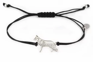 Bransoletka z psem owczarkiem niemieckim srebrnym na czarnym sznurku