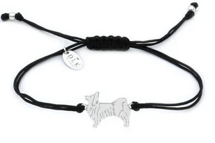 Bransoletka z psem papillonem srebrnym to propozycja wyjątkowej biżuterii na rękę z kolekcji “Rasy psów” dla wszystkich miłośników czworonogów. Bransoletka wykonana jest z łącznika w kształcie sylwetki psa ze srebra (próba 925) oraz z czarnego sznurka. Bransoletkę sznurkową dodatkowo ozdabiają srebrne elementy – kulki i zawieszka DLK z czystego srebra (próba 925). Rozmiar psa: 16 x 13 mm Surowiec: