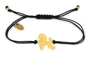 Bransoletka z pudlem złotym to propozycja wyjątkowej biżuterii na rękę z kolekcji “Rasy psów” dla wszystkich miłośników czworonogów. Bransoletka wykonana jest z łącznika w kształcie sylwetki psa z pozłacanego srebra (próba 925) oraz z czarnego sznurka. Bransoletkę sznurkową dodatkowo ozdabiają pozłacane, srebrne elementy – kulki i zawieszka DLK z czystego srebra (próba 925). Rozmiar psa: 15 x 15 mm Surowiec: