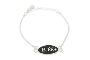 Bransoletka z Grupą Krwi posrebrzana Błyszcząca powierzchnia w kolorze srebrnym Wypełnienie w kolorze głębokiej czerni Łatwa regulacja obwodu Wyraźny wzór ✔ Produkt jest dostępny ✔ Polska marka ✔ Fabryczne opakowanie Informacje Marka: Jubileo Kraj produkcji: Polska Kolor: srebrny Materiał: metal nieszlachetny, posrebrzany Długość zawieszki: