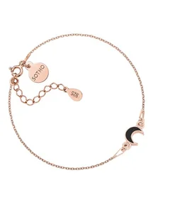 Złota bransoletka z czarnym księżycem z żywicy i zawieszką z logo marki. Całość wykonana ze srebra 925 powlekanego 24 karatowym różowym złotem. Długość bransoletki ok. 16,5 cm plus ok. 3,8 cm przedłużki Gr ...