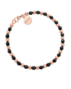 Bransoletka wykonana z czarnego fasetowanego onyksu, zdobiona złotymi kuleczkami i zawieszką z logo marki. Wszystkie elementy wykonane ze srebra 925 powlekan...