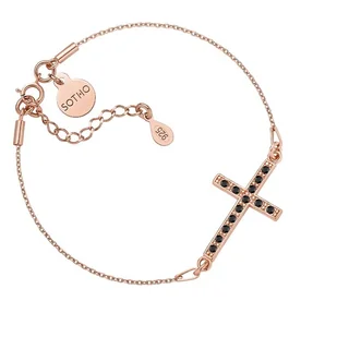 Złota bransoletka łańcuszkowa zdobiona krzyżem wysadzanym czarnymi kryształami SWAROVSKI® CRYSTAL w kolorze Jet i zawieszką z logo marki. Całość wykonana ze srebra 925 powlekanego 18 karatowym różowym z ...