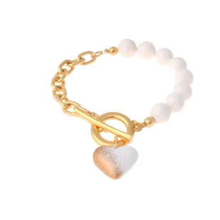 Bransoletka pozłacana wykonana z białego onyksu oraz łańcucha z pękatym emaliowanym sercem, na zapięciu typu toggle. Długość bransoletki 20,0 cm , szerokość ...