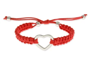 Bransoletka z serduszkiem czerwona Ręcznie pleciona bransoletka wykonana ze sznurka jubilerskiego w kolorze czerwonym. Z przywieszką w kształcie serca w kolorze srebrnym i koralikami na końcach. Posiada regulowany obwód, za pomocą ruchomego węzła. ✔ Produkt jest dostępny ✔ Polska marka ✔ Fabryczne opakowanie Informacje Marka: Jubileo Kraj produkcji: