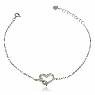 Bransoletka z sercem i nieskończonością na delikatnym łańcuszku srebro 925 Opis produktu: Bransoletka srebrna z sercem i symbolem nieskończoności to subtelna kompozycja elegancji i głębokiego znaczenia. Wykonana z wysokiej próby srebra 925, ozdobiona lśniącymi cyrkoniami, które podkreślają kontury splecionego serca i znaku nieskończoności. Symbolika tej biżuterii mówi o wiecznej miłości, nierozerwalnym związku i emocjonalnej więzi, która nie zna granic. Delikatny łańcuszek zakończony przedłużką z zawieszką w kształcie serduszka pozwala na regulację długości i idealne dopasowanie do nadgarstka.