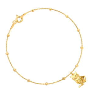 Subtelna bransoletka ze srebra próby 925 pozłacanego 24-karatowym złotem. Bransoletka składa się z łańcuszka i zawieszki w kształcie sowy. Długość bransoletk...