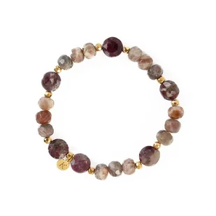 Bransoletka z Turmalinem bordowy i kamieniem życia - Wersja Pozłacana