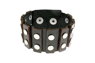 Bransoletka z Nitami skórzana Dwurzędowa bransoletka nabijana nitami. Regulacja dwustopniowa. Wykonana ze skóry koloru czarnego z elementami drewnianymi w kolorze brązowym. ✔ Produkt jest dostępny ✔ Polska marka ✔ Fabryczne opakowanie Informacje Marka: Jubileo Kraj produkcji: