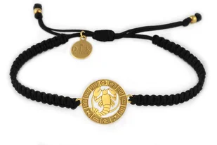 Bransoletka ze znakiem zodiaku RAK złoty na czarnej makramie należy do kolekcji stworzonej z myślą o twórczym wykorzystaniu astrologii, dla osób chcących skupić się na własnych możliwościach. Bransoletki stanowią symbol astrologicznego patrona, przypominają by zagłębiać się we własną naturę, a sekrety tej natury właściwie wykorzystywać w życiu. Znak zodiaku RAK patronuje osobom urodzonym w dniach od 21 czerwca do 22 lipca. Bransoletka z Rakiem wykonana jest ze splecionego sznurka w czarnym kolorze, znak zodiaku, zawieszka DLK oraz kulki na zakończeniach sznurka wykonane są z pozłacanego srebra próby 925. Surowiec: Srebro próby 925 Rozmiar elementu srebrnego: