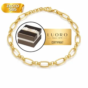 9,5 mm Średnica kółka: 3,6 mm Waga: ok. 2,94 g ZESTAW Z KLASĄ Oprócz biżuterii otrzymasz kompletny zestaw jubilerski, który podkreśla jej luksusowy charakter. W zestawie znajdziesz: Złota bransoletka Luoro, Próba 585, Eleganckie ozdobne pudełko jubilerskie z satynową kokardką i welurową wkładką, Certyfikat Wyrobu Jubilerskiego w formie plastikowej karty - potwierdzający autentyczność wyrobu jubilerskiego, Oryginalna metka jubilerska, na której nie ma ceny.