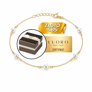 ok. 2,90 mm Waga: ok. 0,91 g ZESTAW Z KLASĄ Oprócz biżuterii otrzymasz kompletny zestaw jubilerski, który podkreśla jej luksusowy charakter. W zestawie znajdziesz: Złota bransoletka Luoro, Próba 585, Eleganckie ozdobne pudełko jubilerskie z satynową kokardką i welurową wkładką, Certyfikat Wyrobu Jubilerskiego w formie plastikowej karty - potwierdzający autentyczność wyrobu jubilerskiego, Oryginalna metka jubilerska, na której nie ma ceny. Idealne na prezent, Ściereczka do czyszczenia złota, aby Twoja biżuteria zawsze olśniewała, Naklejka informująca, jaka próba złota została wykorzystana do produkcji bransoletki.