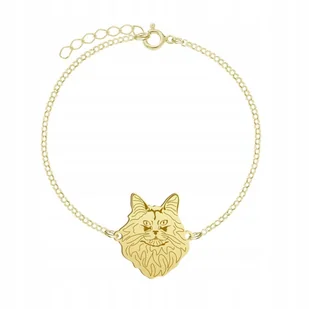 Bransoletka Złota Kot Norweski Leśny 925 Prezent Biżuteria Kobieta GRAWER