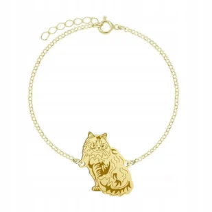 Bransoletka Złota Kot Norweski Leśny 925 Prezent Kobieta Biżuteria GRAWER