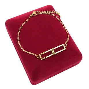 Bransoletka wykonana z wysokiej jakości stali chirurgicznej o barwie srebrnej. Splot typu ankier połączony z modnym wzorem prostokąta podzielonego na pół. Pasującego zarówno do codziennych, jak i okolicznościowych stylizacji. Długość: ok. 17cm + 3cm przedłużka Wymiary prostokąta: ok. 28mm x 6mm Kolor:
