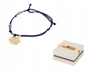 Bransoletka wykona ze sznurka przyozdobionego eleganckim liściem wykonanym ze złota oraz kulkami. Posiada regulację dzięki czemu pasuje na każdą dłoń. Idealn...