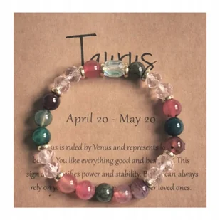 Bransoletka inspirowana znakiem zodiaku Byk (♉) – osoby urodzone 20.04–20.05. ✨ Wykonana z połączenia kamieni, kryształów i stopu metalu – elegancka i wyjątk...