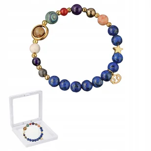Bransoletka inspirowana znakiem zodiaku Rak (♋) ✨. Wykonana z kolorowych koralików w planetarnym stylu . Ozdobiona złotym symbolem znaku i gwiazdką ⭐. Elasty...