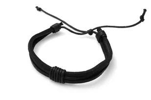 Bransoletka Wiązana ekoskóra czarna Męska bransoletka z trzech pasków owiniętych rzemieniami. Wykonana z czarnej eko - skóry. Posiada regulowany obwód, za po...