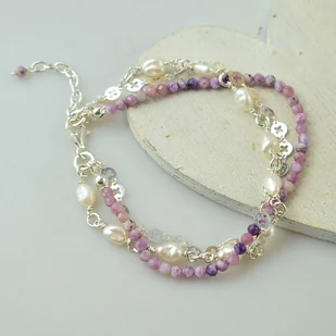 Delikatna bransoletka wykonana w całości ze srebra z czaroitem i perłami. Długość regulowana 20 - 23 cm. Biżuteria zostanie ozdobnie zapako ...