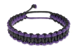 fioletowy, czarny Materiał: sznurek jubilerski woskowany Szerokość: 1,2 cm Obwód: uniwersalny regulowany, min. 17 cm Długość regulacji: