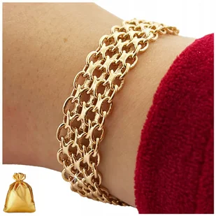 ok. 15 gram Kamień: brak Produkt antyalergiczny Całość zabezpieczona lakierem jubilerskim W zestawie: ✔️ Bransoletka damska ✔️ Woreczek prezentowy ✔️ Metka jubilerska Wymiary: ✔️ Długość: 20 cm + 5 cm regulacji ✔️ Szerokość 1 cm Co wyróżnia naszą markę? ❇️ Oryginalne produkty najwyższej jakości - gotowe na prezent ❇️ Marka Golden Celebrity oferuje od wielu lat unikalne, wyjątkowe i ponadczasowe wyroby jubilerskie ❇️ W naszej pracy łączymy pasję do pięknych przedmiotów, jubilerską wiedzę i znajomość modowych trendów ❇️ 100% gwarancji satysfakcji i zadowolenia ➡️ OPCJA DODATKOWA + 25 ZŁ Wybierając opcję dodatkową "zapakuj na prezent" do zamówienia dołączona zostanie elegancka torebka prezentowa + opakowanie jubilerskie widoczne na zdjęciu + złota tabliczka z grawerem (własny tekst).