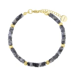 Damska delikatna bransoletka z szarym larvikitem i złotymi elementami ze stali szlachetnej to elegancki dodatek, który doda klasy każdej stylizacji. Złote elementy dodają jej luksusowego wyglądu, idealnie kontrastując z czernią onyksu. Bransoletka wykonana jest z wysokiej jakości materiałów, co gwarantuje jej trwałość i komfort noszenia. Doskonała na specjalne okazje oraz na co dzień, ta bransoletka będzie wspaniałym uzupełnieniem Twojej biżuterii. Wybierz tę bransoletkę, aby podkreślić swój styl i dodać odrobinę elegancji do każdego stroju.