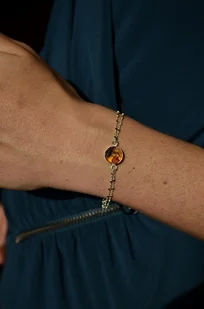 Delikatna srebrna bransoletka z bursztynem KOŁO