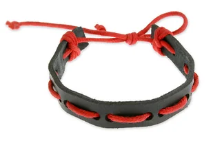 czerwono, czarny Materiał: skóra,sznurek Szerokość: 1,2 cm Średnica: regulowana Obwód: min. 19,0 cm Długość regulacji: